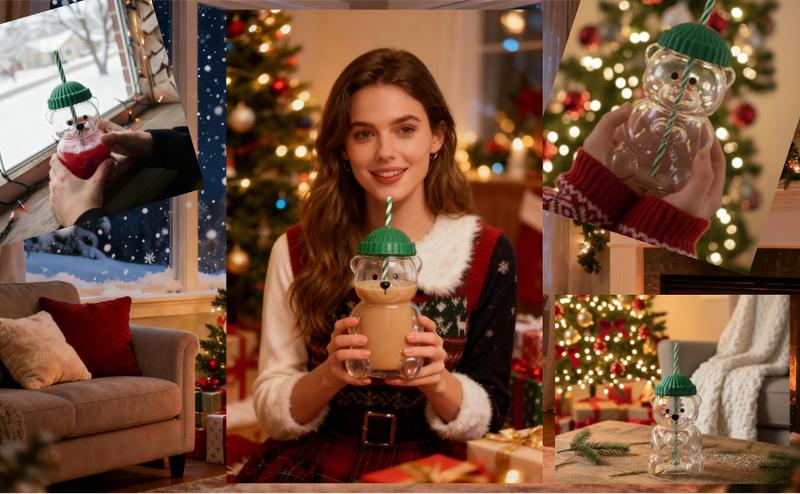 Bear Straw Cup, Cute Baby Straw Cups Glass, Honey Bear Cup with Straws, Cute Mugs for Coffee Drinks 20Oz (1 PC)